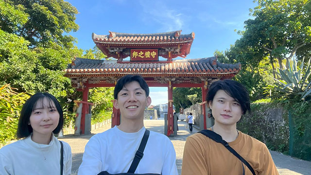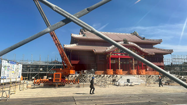 宿泊はOMO5沖縄那覇by星野リゾート、ということでそそくさと荷物を預け、まずは首里城へGOです。と、その前に腹ごしらえ、首里城近くで沖縄そばを食べました。(筆者は軟骨ソーキ、二人は三枚肉)首里城は皆様ご存じの通り「見せる復興」中で、遠くから眺める感じでした。そういえば、宮澤くんは沖縄そば屋あたりで財布がないと言い出し、「ホテルにあるよね?大丈夫だよね?」と自己暗示してましたね。