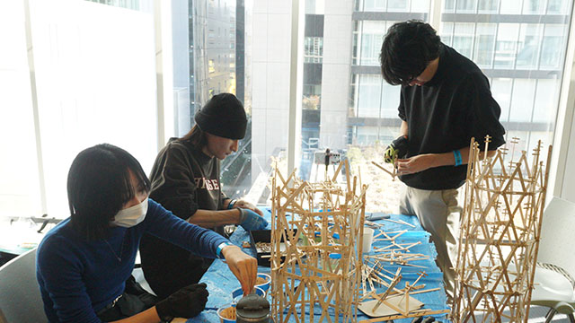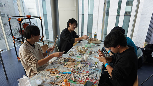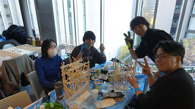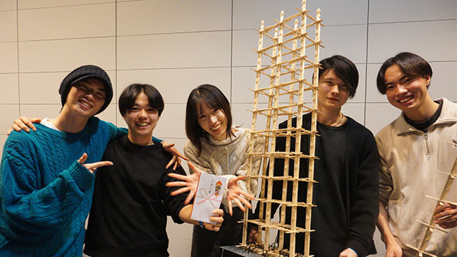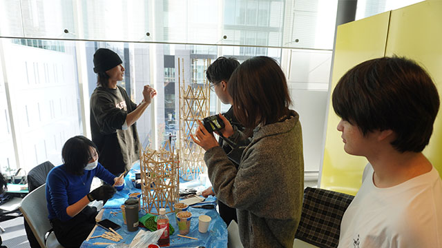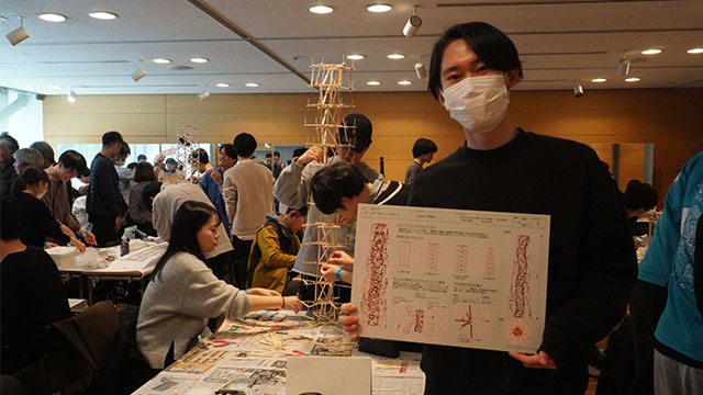 本イベントは、アイス棒を用いてタワーを作成し、耐震性とデザイン性を競うコンテストであり、学生や社会人などの枠を飛び越えて広い世代の方々が参加されていました。