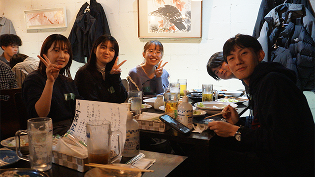 中間発表を終えた後は、蕎麦酒房さんにて打ち上げを行いました。現在研究室に所属しているメンバーに加え、研究室配属予定のB3も参加して仲を深めました。